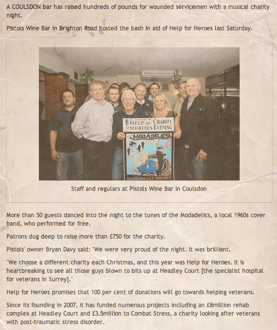We played a gig for free to raise money to charity for Help for Heroes.